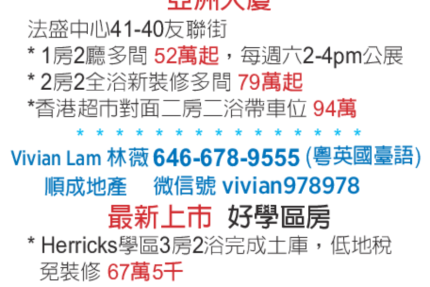 亚洲大厦法拉盛好学区房出售718 709 6130 金牌资讯网